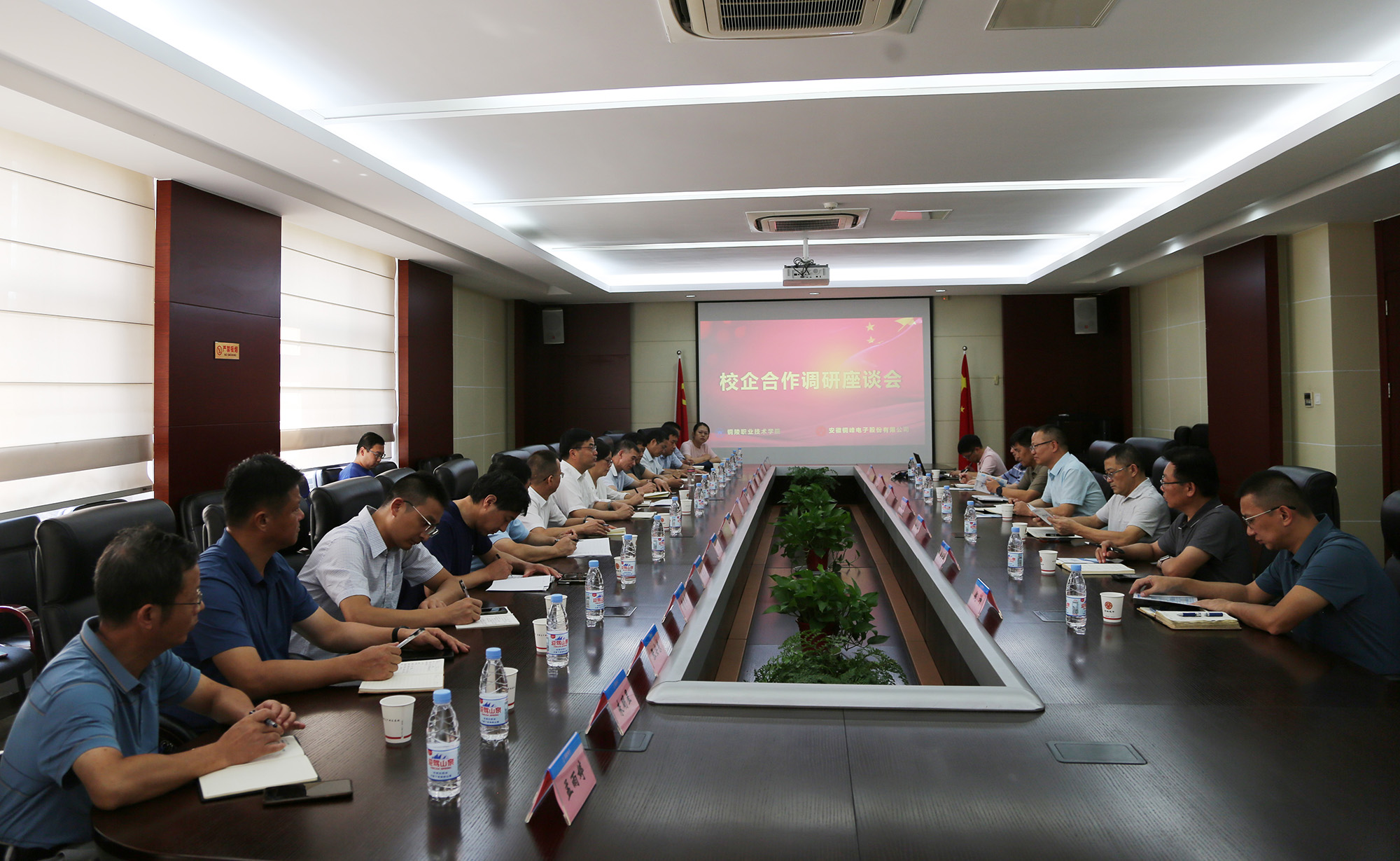 8月24日下午,銅陵職業(yè)技術(shù)學(xué)院黨委書記、市發(fā)改委主任凌勇,黨委副書記、院長(zhǎng)凌濤,黨委副書記徐文等學(xué)院領(lǐng)導(dǎo)和相關(guān)職能處室負(fù)責(zé)人來(lái)公司開(kāi)展校企合作調(diào)研座談活動(dòng)。公司黨委書記、董事長(zhǎng)黃明強(qiáng),常務(wù)副總經(jīng)理、總工程師儲(chǔ)松潮,副總經(jīng)理、財(cái)務(wù)總監(jiān)郭傳紅,黨委副書記、紀(jì)委書記、工會(huì)主席潘世宇及相關(guān)職能部門負(fù)責(zé)人陪同調(diào)研。