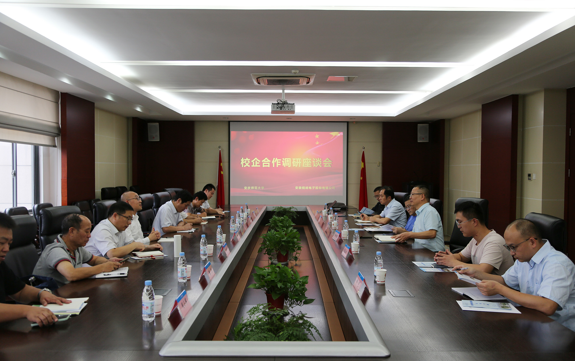 8月28日下午,安慶師范大學(xué)黨委常委、副校長(zhǎng)肖新率隊(duì)來(lái)公司開展校企合作走訪調(diào)研,并進(jìn)行座談。公司黨委書記、董事長(zhǎng)黃明強(qiáng),常務(wù)副總經(jīng)理、總工程師儲(chǔ)松潮,安慶師范大學(xué)研究生學(xué)院、電子工程與智能制造學(xué)院和科研處等相關(guān)職能處室負(fù)責(zé)人,公司相關(guān)職能部門負(fù)責(zé)人及校友代表陪同。