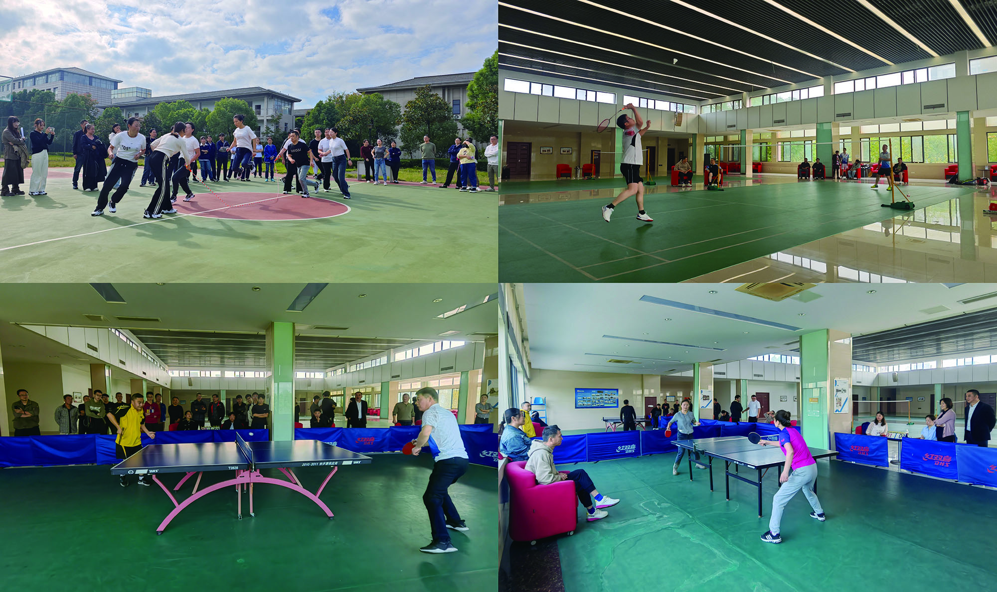 籃球、拔河、十人八字跳繩比賽項(xiàng)目中,隊(duì)員們團(tuán)結(jié)協(xié)作,配合默契,奮勇拼搏。乒、羽比賽項(xiàng)目中,運(yùn)動(dòng)員們展現(xiàn)技藝,“乒”出風(fēng)采、誰(shuí)“羽”爭(zhēng)鋒,盡情享受運(yùn)動(dòng)帶來(lái)的快樂。
