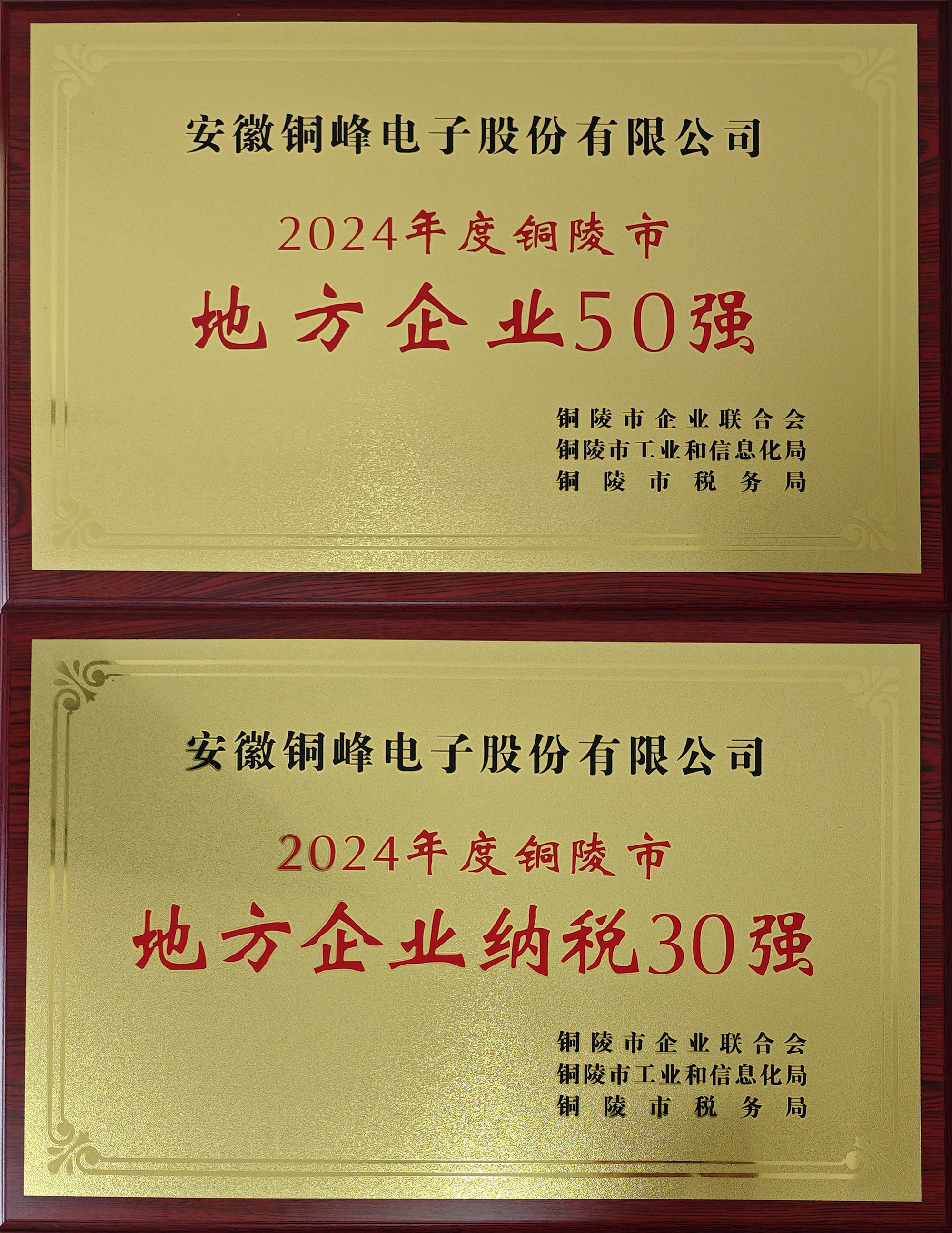 8月8日下午,由市企業(yè)聯(lián)合會、市工信局、市稅務(wù)局主辦的2024年度銅陵市地方企業(yè)50強、地方企業(yè)納稅30強發(fā)布會舉行。公司憑借突出的經(jīng)營業(yè)績與納稅貢獻,榮登“地方企業(yè)50強”“地方企業(yè)納稅30強”雙強榜單。