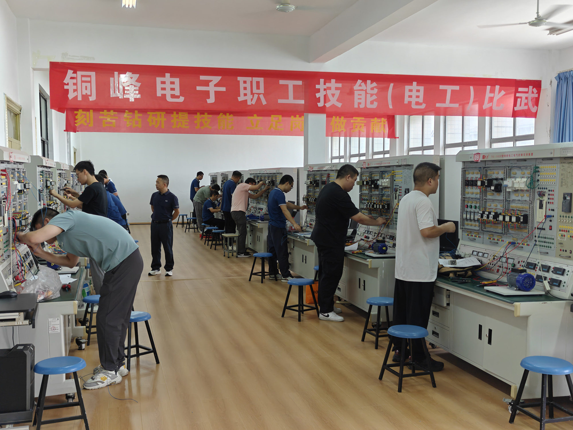 近日,公司2025年度職工電工、叉車工技能比武分別在市中職中心和銅陵職業(yè)技術(shù)學(xué)院舉行。本次比武共有46名選手參賽,圍繞“精準(zhǔn)操作、高效作業(yè)與安全規(guī)范”展開精彩角逐。比武的賽制設(shè)計(jì)對標(biāo)職業(yè)技能等級認(rèn)定標(biāo)準(zhǔn),分理論和實(shí)踐操作兩個(gè)環(huán)節(jié),全面展示了公司一線技能型人才的專業(yè)素養(yǎng)與實(shí)踐能力。